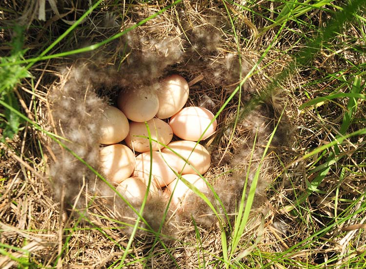 • Apariencia: Depresión poco profunda forrada con vegetación seca y plumón extraído del cuerpo de la hembra