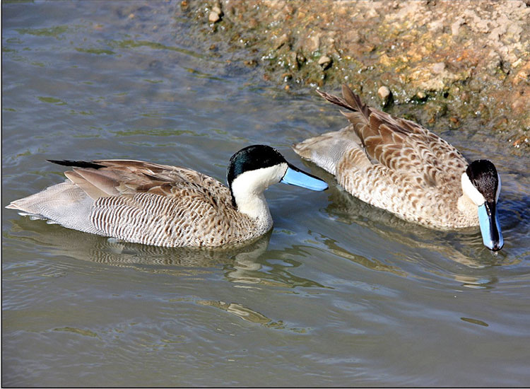 Diferencias: El Pato de la Puna es de una coloración más gris, el pico es celeste, es un pato netamente andino.