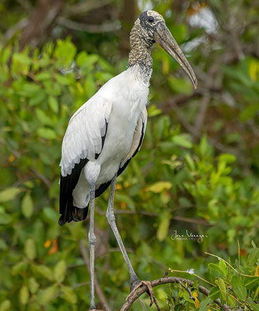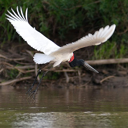 El Jabirú es la segunda ave voladora más grande de las Americas. Conocido también como Yabirú, Tuyuyo, Tuyuyú y Cigüeña Jabirú vive en humedales y cerca a cuerpos de agua. A los que lo ven de cerca les llama la atención la el pico grande y grueso, y la cabeza y cuello desnudos y negros. También llama la atención la contratante área desnuda roja en la base del cuello que el Jabirú infla durante interacciones y situaciones de peligro.
