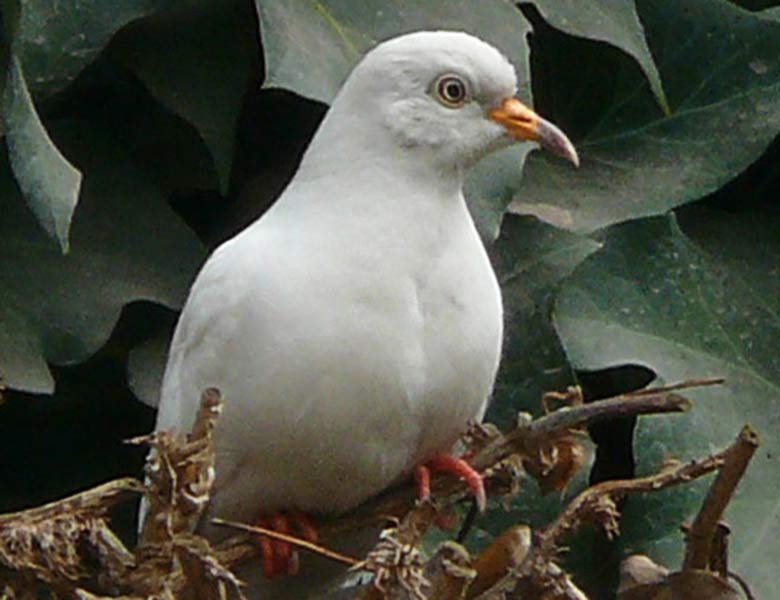 Esta tortolita tiene una condición genética que provoca una falta de pigmentación en sus plumas, lo que da como resultado un plumaje completamente blanco. Sin embargo, todavía tiene los colores normales de ojos, patas y pico. El leucismo es diferente del albinismo, que afecta a todo el cuerpo, incluidos los ojos, pico y patas.