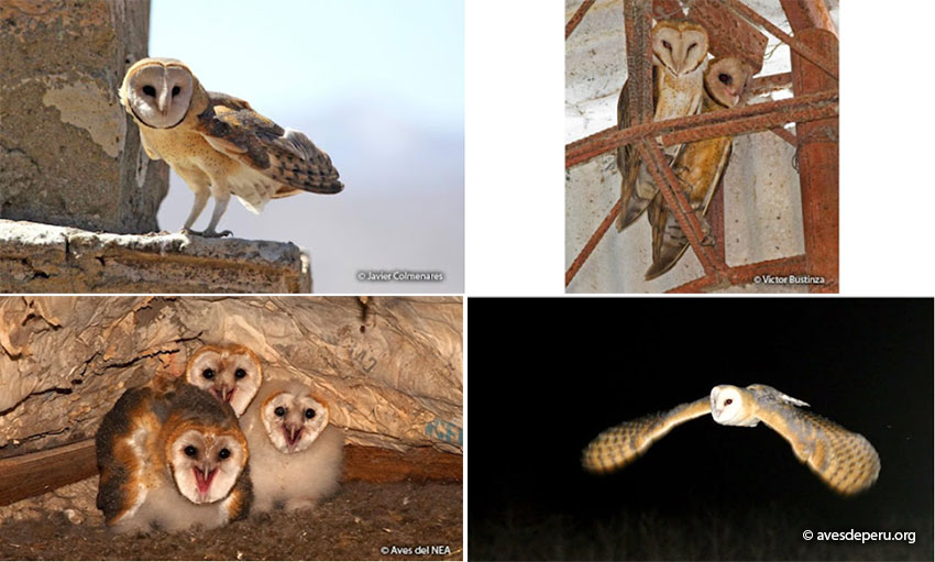 La lechuza de campanario es la única representante de la familia Tytonidae en el Perú. La característica principal de las lechuzas de campanario es el disco facial en forma de corazón formado por plumas rígidas, que sirven para amplificar y localizar la fuente de sonidos emitidos por sus presas.